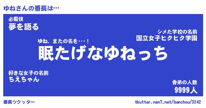 | 伝説のあだ名 | 『封印されしスナイパーゆね』 |