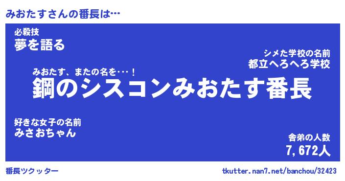 | 男性向けラノベタイトル風あだ名 | 『ミオタスアートオンライン』 |