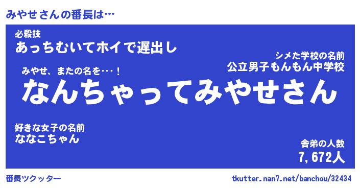 | 肩書あだ名 | 『みやせ社長』『みやせ総理大臣』 |