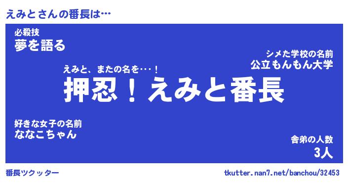 | ヒーロー風カッコイイあだ名 | 『スーパーエミト』『ウルトラえみとマン』 |