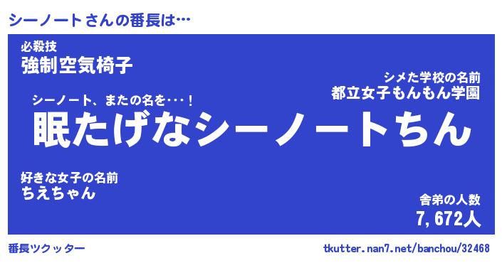 | 2回繰り返すあだ名 | 『シーシー』『シシーー』『ねちねち』 |