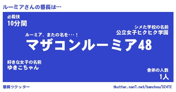 | ファンタジー風あだ名 | 『ルーフェル』『エターナルルーミアー』 |