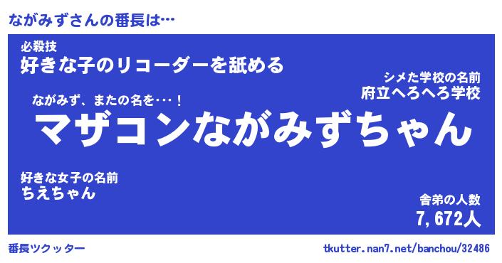 | 意味不明あだ名 | 『ペロリンながみず』『永久保存ながみず』 |