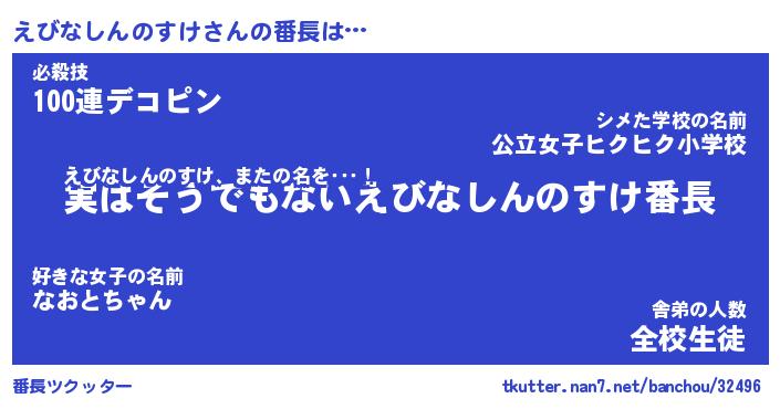 | 伝説のあだ名 | 『封印されしスナイパーえびなしんのすけ』 |