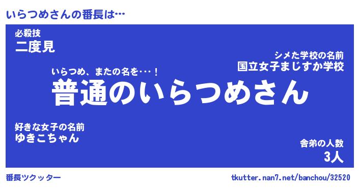 | ファンタジー風あだ名 | 『イラフェル』『エターナルイラツメー』 |
