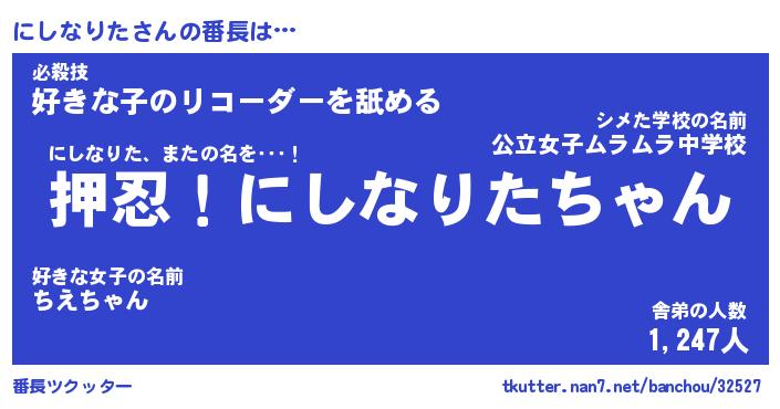 | 肩書あだ名 | 『にしなりた社長』『にしなりた国家主席』 |