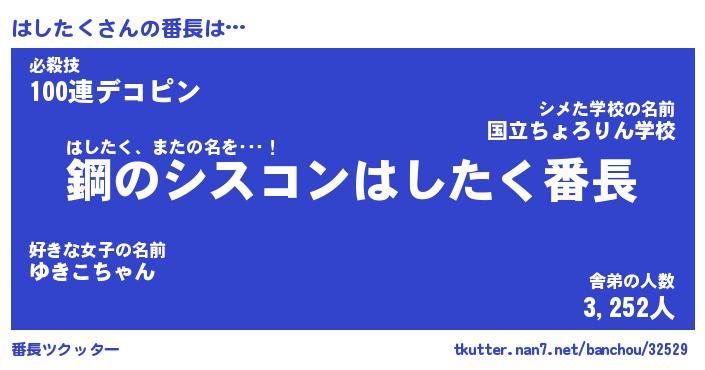 | ヘコむあだ名 | 『はしにゅー』『つくし』『はし太郎』 |