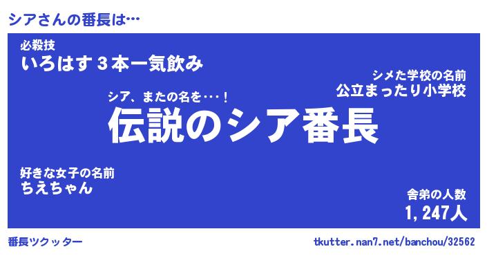 | ヘコむあだ名 | 『シアにー』『なまこ酢』『シアっぺ』 |