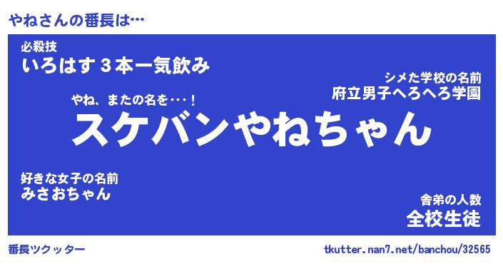 | ヘコむあだ名 | 『やねもー』『なまこ酢』『やねっぺ』 |