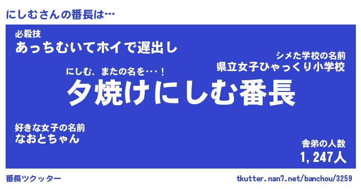 | 肩書あだ名 | 『にしむ社長』『にしむ総理大臣』 |