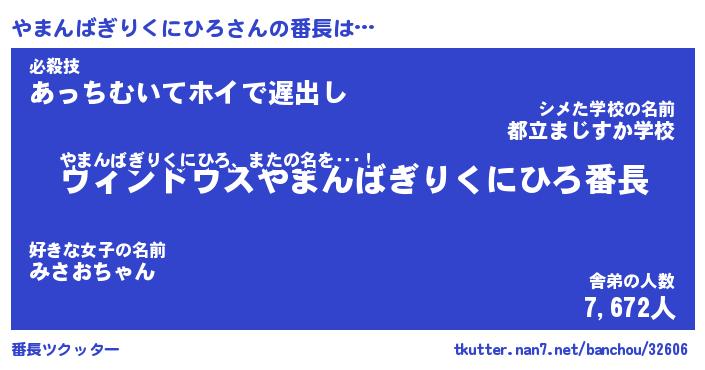 | 男性向けラノベタイトル風あだ名 | 『やまんばぎりくにひろの憂鬱』 |