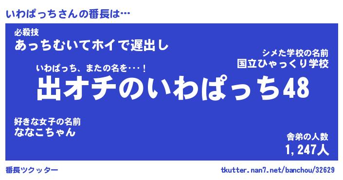 | ファンタジー風あだ名 | 『イワフェル』『エターナルイワパッチー』 |