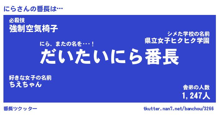 | 2回繰り返すあだ名 | 『にらにら』『ににらら』『うずうず』 |