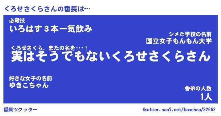 | 恥ずかしいあだ名 | 『プリティーくろせさくら』『くろっちょ』 |