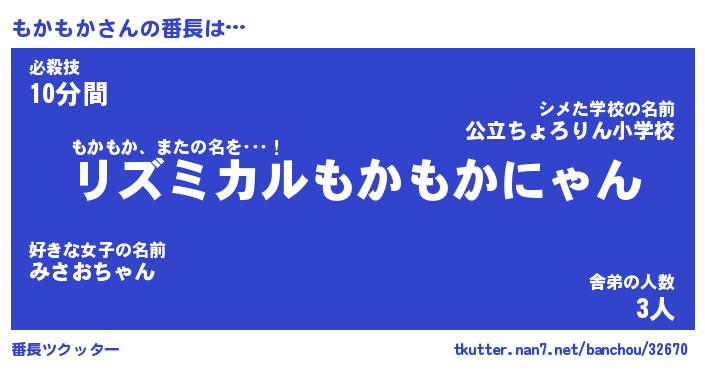 | 2回繰り返すあだ名 | 『もかもか』『ももかか』『うろうろ』 |