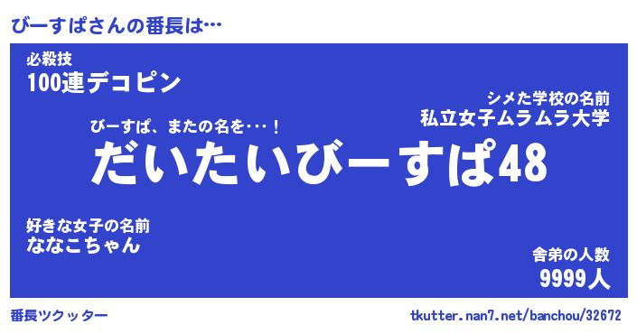 肩書あだ名 | 『びーすぱ店長』『びーすぱ総理大臣』 |