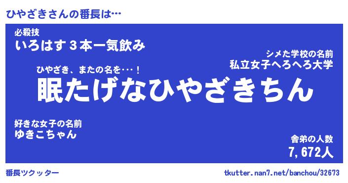 | 肩書あだ名 | 『ひやざき店長』『ひやざき国家主席』 |