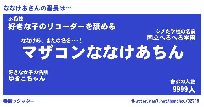 | 肩書あだ名 | 『ななけあ御曹司』『ななけあ大統領』 |