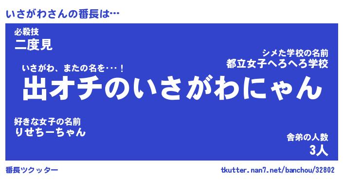 | 意味不明あだ名 | 『ペロリンいさがわ』『永久保存いさがわ』 |