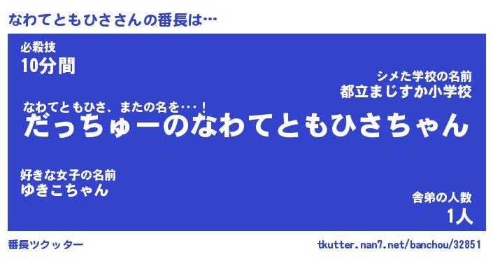 | 伝説のあだ名 | 『伝説のスナイパーなわてともひさ』 |
