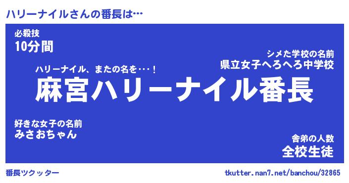 | 男性向けラノベタイトル風あだ名 | 『ハリーナイルアートオンライン』 |
