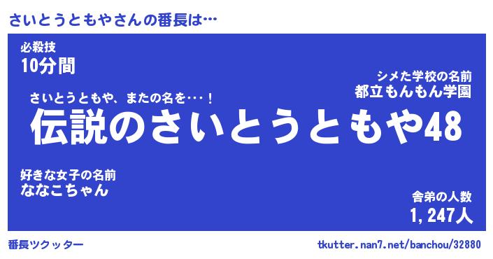 | 肩書あだ名 | 『さいとうともや店長』 |
