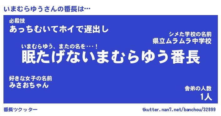 | 伝説のあだ名 | 『封印されし竜騎士いまむらゆう』 |