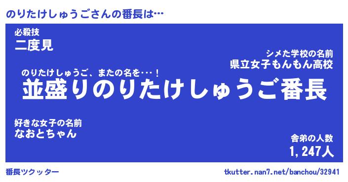 | 男性向けラノベタイトル風あだ名 | 『のりたけしゅうごの憂鬱』 |