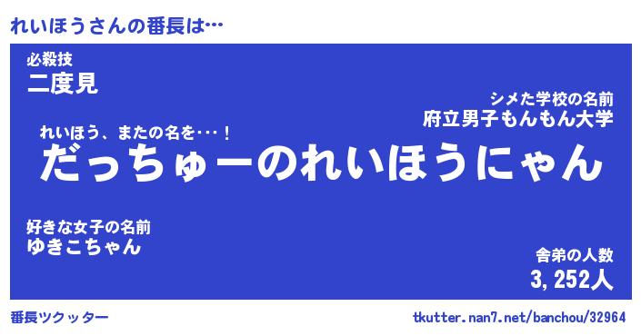 | 意味不明あだ名 | 『ペロリンれいほう』『永久保存れいほう』 |