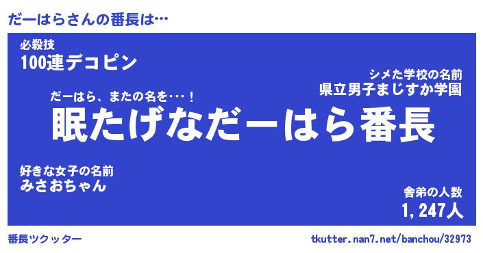 | ヒーロー風カッコイイあだ名 | 『スーパーダーハラ』『銀牙騎士ダー』 |