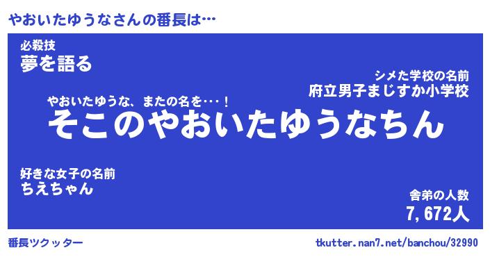 | 伝説のあだ名 | 『不死鳥のスナイパーやおいたゆうな』 |