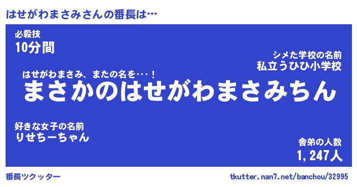 | 伝説のあだ名 | 『伝説のスナイパーはせがわまさみ』 |