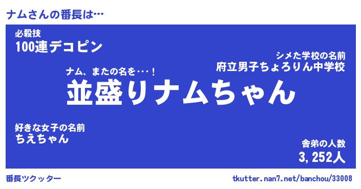 | ポケモン風あだ名 | 『ナムチュウ』『ナムダネ』『ヒナム』 |