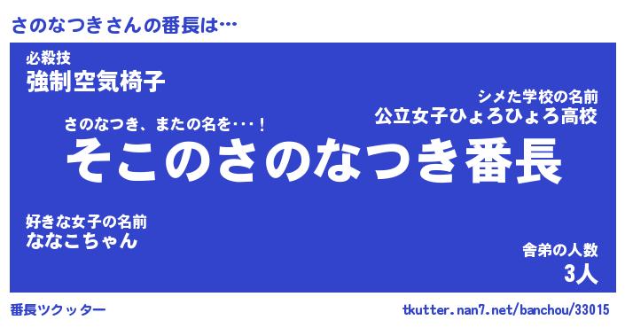 | ポケモン風あだ名 | 『サノチュウ』『サノナダネ』 |