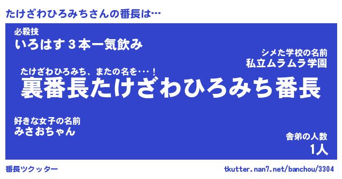 | ヘコむあだ名 | 『たけもー』『なまこ酢』『たけを』 |