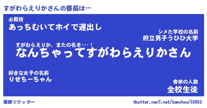 | 肩書あだ名 | 『すがわらえりか御曹司』 |
