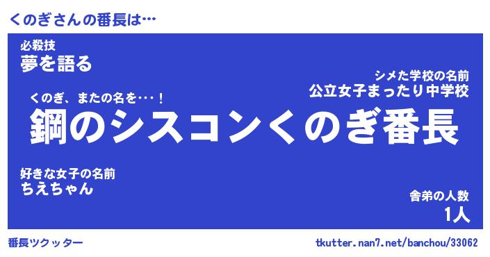 | 意味不明あだ名 | 『ペロリンくのぎ』『くのぎフォーエバー』 |