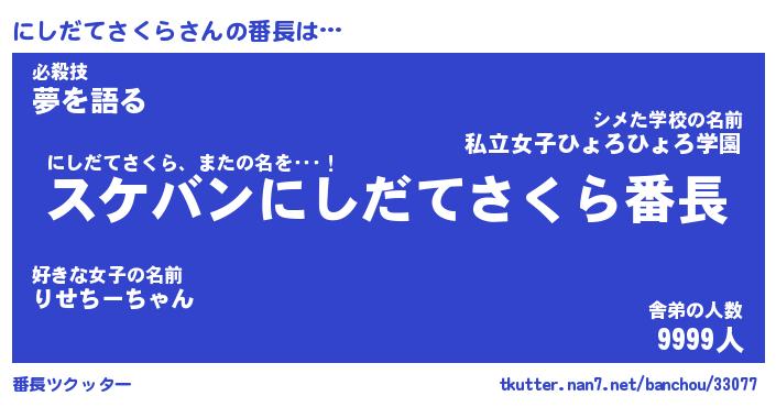 | ヒーロー風カッコイイあだ名 | 『スーパーニシダテサクラ』 |