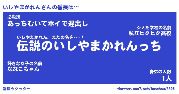 | 2回繰り返すあだ名 | 『いしいし』『いいしし』『いそいそ』 |
