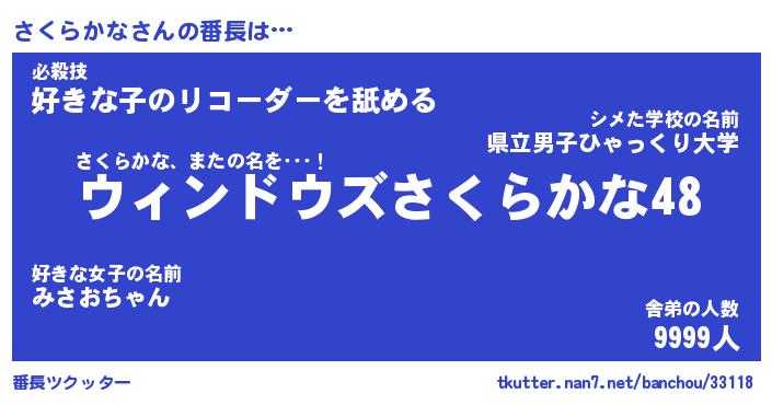 | ヒーロー風カッコイイあだ名 | 『スーパーサクラカナ』『炎刃騎士サク』 |
