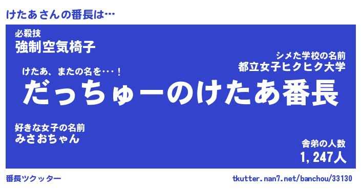 | ヒーロー風カッコイイあだ名 | 『スーパーケタア』『ウルトラけたあマン』 |