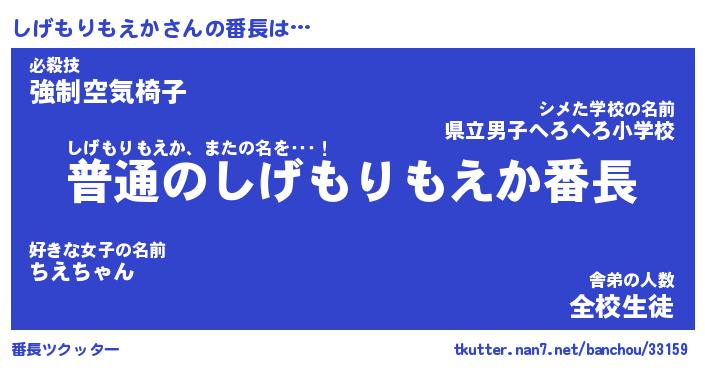 | 肩書あだ名 | 『しげもりもえか社長令嬢』 |