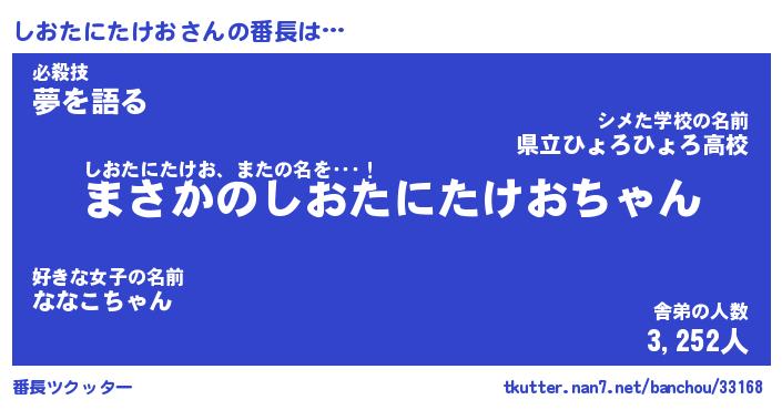| 男性向けラノベタイトル風あだ名 | 『しおたにたけおの憂鬱』 |