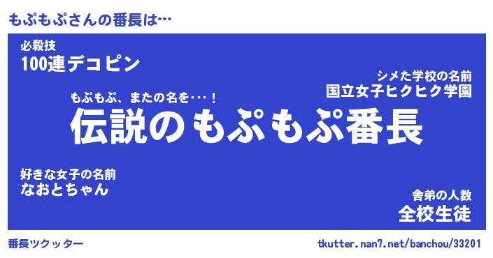 | ヘコむあだ名 | 『もぷにゅー』『つくし』『もぷを』 |