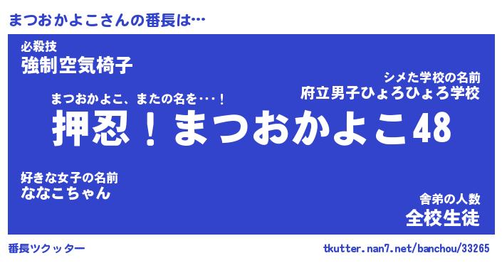 | 伝説のあだ名 | 『封印されしスナイパーまつおかよこ』 |