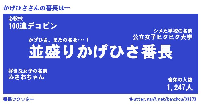 | ピコ太郎風あだ名 | 『カコ六郎』『ピカ太郎』『カゲ二郎』 |