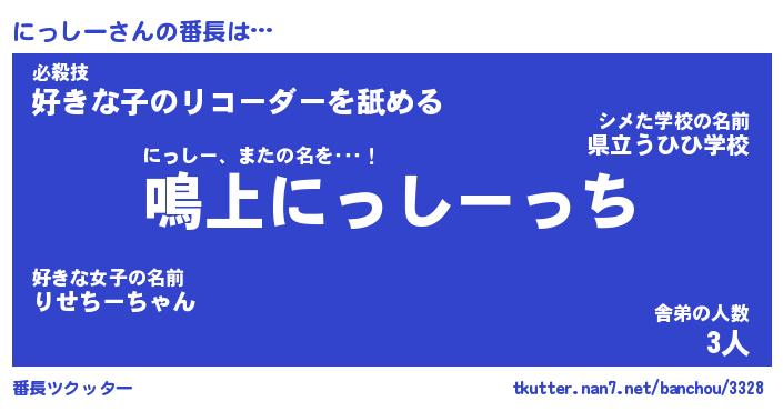| 意味不明あだ名 | 『ペロリンにっしー』『永久保存にっしー』 |