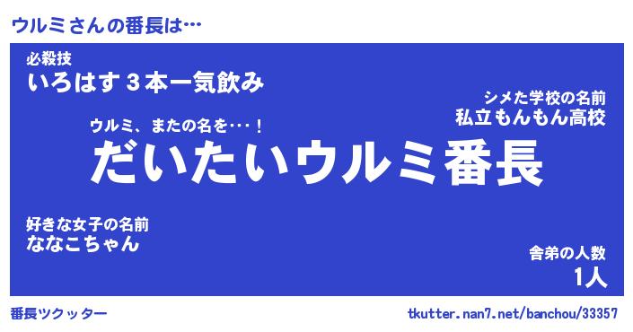 | ヒーロー風カッコイイあだ名 | 『スーパーウルミ』『ウルトラウルミマン』 |