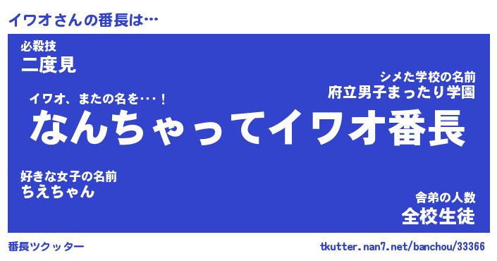 | 意味不明あだ名 | 『ペロリンイワオ』『イワオフォーエバー』 |