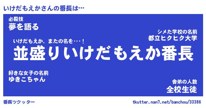 | 肩書あだ名 | 『いけだもえか店長』『いけだもえか教授』 |
